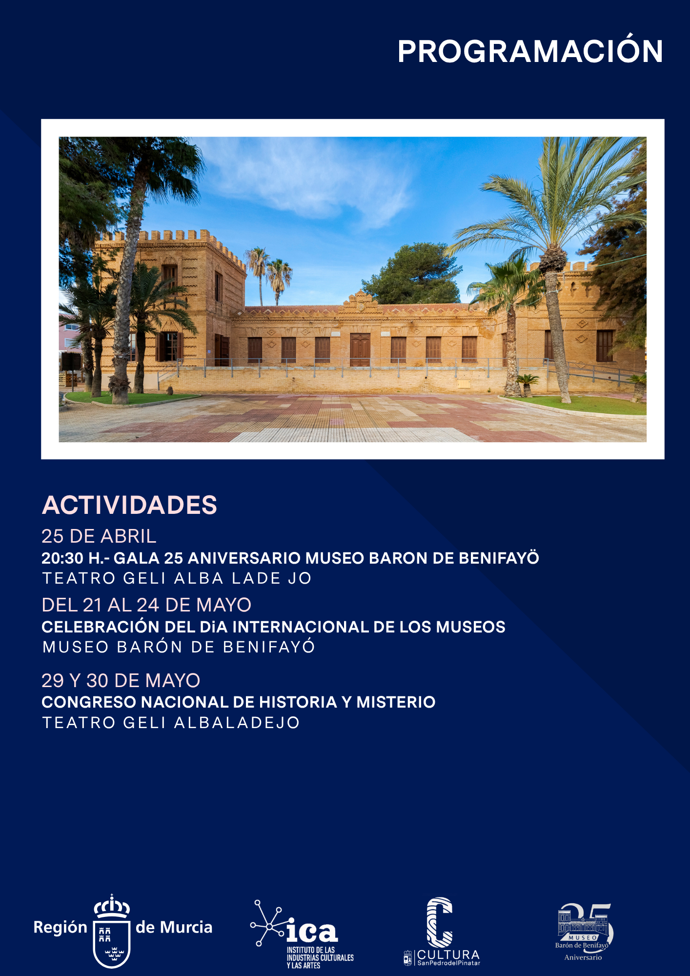 La concejal de Cultura de San Pedro del Pinatar, Carmen María López, ha presentado el calendario de actividades programadas en torno al museo Barón de Benifayó para el segundo trimestre del año y que se centran en el 25 aniversario de este referente cultural del municipio.