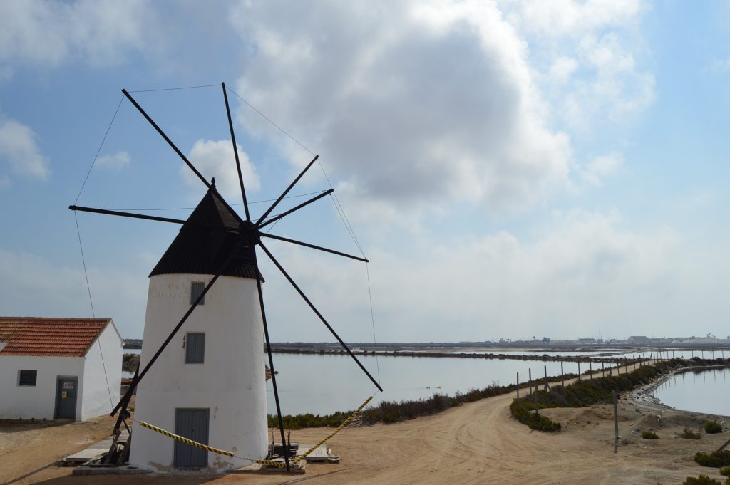 Las salinas de San Pedro del Pinatar se extienden entre dos mares, el Mediterráneo y el Mar Menor, conectadas por una red de canales que transportan el agua por acción de la gravedad y mediante dos puntos de bombeo situado en los históricos molinos de Quintín y Calcetera, ambos declarados Bien de Interés Cultural. Durante el recorrido, se conocerá el funcionamiento de este sistema tradicional de explotación salinera y la importancia de estos molinos. Además, se pasará junto al charco almacenador del molino de Quintín, donde se encuentran los famosos baños de lodo, conocidos por sus propiedades terapéuticas y su atractivo para el turismo de salud.