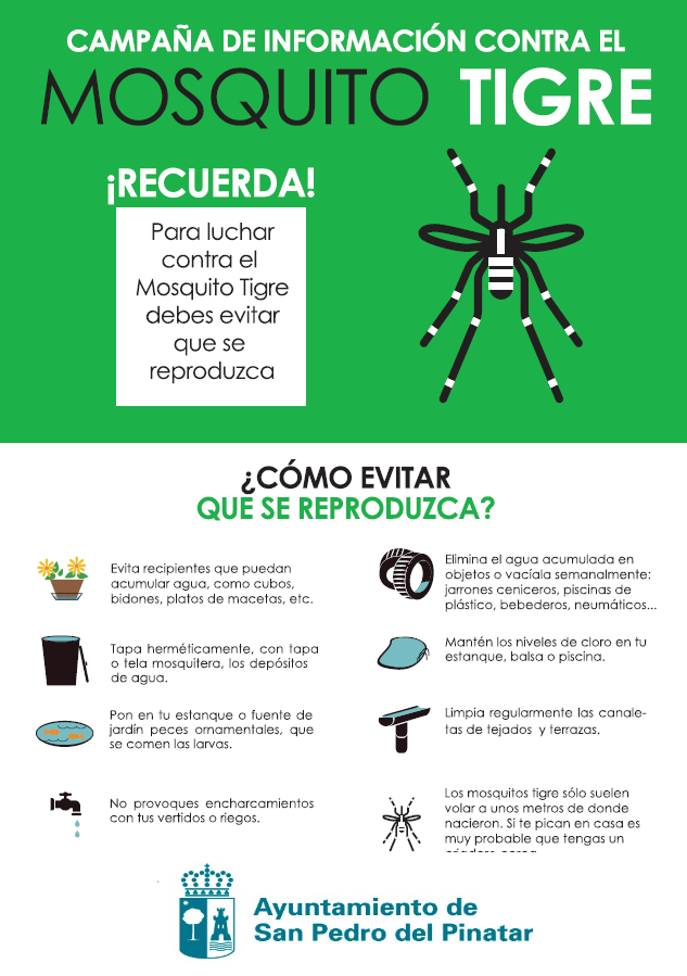 La Concejalía de Sanidad de San Pedro del Pinatar, en colaboración con la empresa concesionaria del Servicio de Control de Plagas, Belmonte Ambiental,  intensifica durante la temporada estival las actuaciones dirigidas al control del mosquito tigre, cucarachas, roedores y otros insectos.