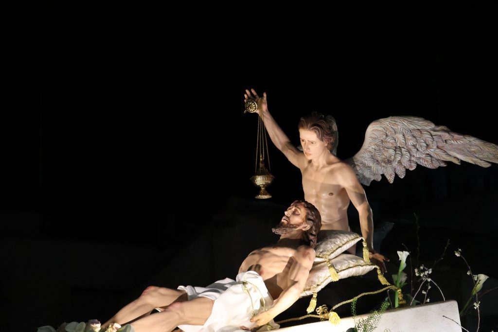 Cerraban el desfile la imagen de la Soledad, perteneciente a la Hermandad de San Juan Evangelista, el Santo Sepulcro, que muestra a Jesús yacente junto a un ángel custodio, la imagen titular de San Juan Evangelista, que cumple 75 años, y la Virgen de Los Dolores, imagen del escultor Sánchez Lozano, que procesiona bajo palio.