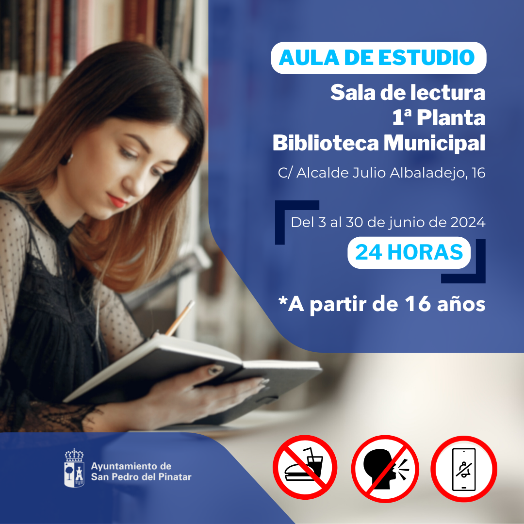 El alcalde de San Pedro del Pinatar, Pedro Javier Sánchez Aznar, ha anunciado hoy que, con motivo de la temporada de exámenes, se ampliará el horario de la biblioteca municipal, ubicada en calle Alcalde Julio Albaladejo, de manera que los jóvenes contarán con un nuevo espacio abierto 24 horas para el estudio.