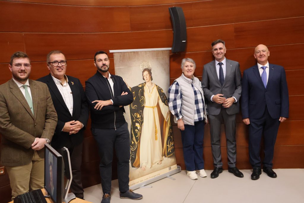 Posteriormente, los ponentes en el acto, miembros del cabildo de la Semana Santa de la localidad, de la corporación municipal y de la cofradía se desplazaron hasta la iglesia de San Juan Bautista de Murcia, que alberga la imagen del San Juan Evangelista que el sábado desfilará en la Magna procesión de Murcia desde la Catedral.