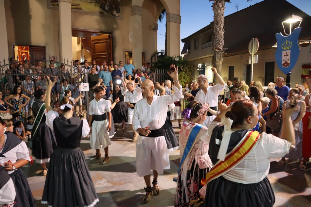 La procesión partió desde la Residencia Virgen del Mar de las Hermanas Franciscanas y concluyó en la iglesia de Nuestra Señora del Carmen de Lo Pagán. Decenas de vecinos y fieles participaron ataviados con trajes de pescadores y huertanos, al tiempo que miembros de la peña El Caldero amenizaban el recorrido con típicos bailes regionales.
