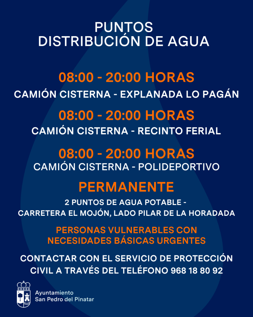 𝗣𝘂𝗻𝘁𝗼𝘀 𝗱𝗲 𝗱𝗶𝘀𝘁𝗿𝗶𝗯𝘂𝗰𝗶𝗼́𝗻 𝗱𝗲 𝗮𝗴𝘂𝗮 𝗽𝗼𝘁𝗮𝗯𝗹𝗲 a partir del martes, 14 de octubre hasta el restablecimiento de la normalidad en el suministro: