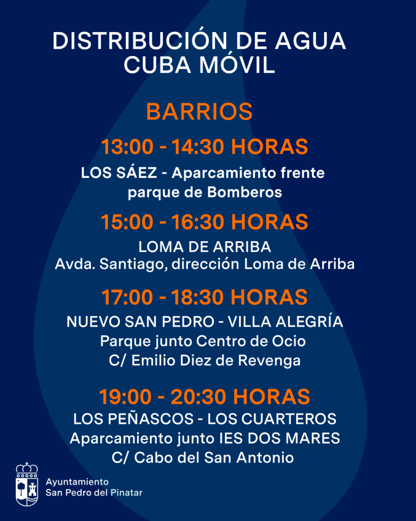 📍 08:00 – 20:00 h: Camión cisterna en la explanada de Lo Pagán