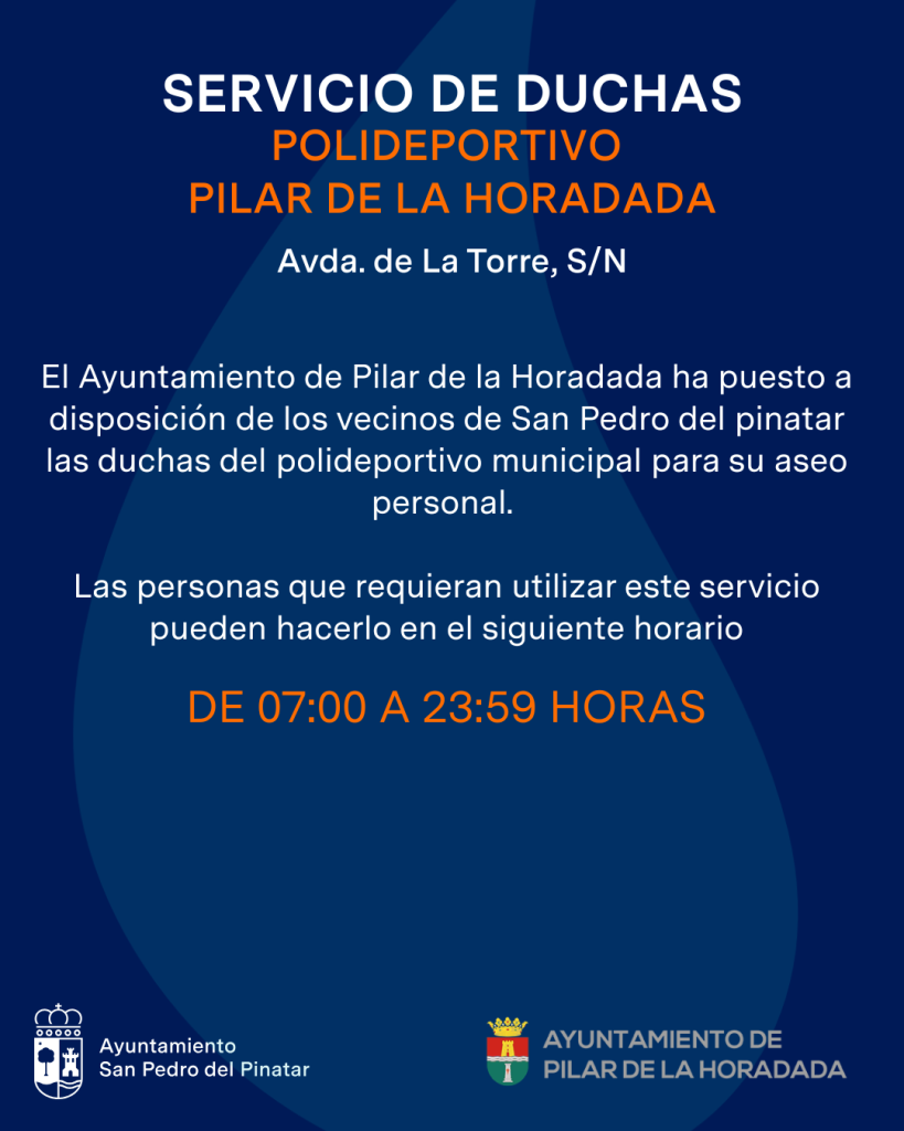 🚿 𝗦𝗲𝗿𝘃𝗶𝗰𝗶𝗼 𝗱𝗲 𝗱𝘂𝗰𝗵𝗮 𝗲𝗻 𝗲𝗹 𝗽𝗼𝗹𝗶𝗱𝗲𝗽𝗼𝗿𝘁𝗶𝘃𝗼 𝗱𝗲 𝗣𝗶𝗹𝗮𝗿 𝗱𝗲 𝗹𝗮 𝗵𝗼𝗿𝗮𝗱𝗮𝗱𝗮: desde las 07:00 a las 23:59 horas.
