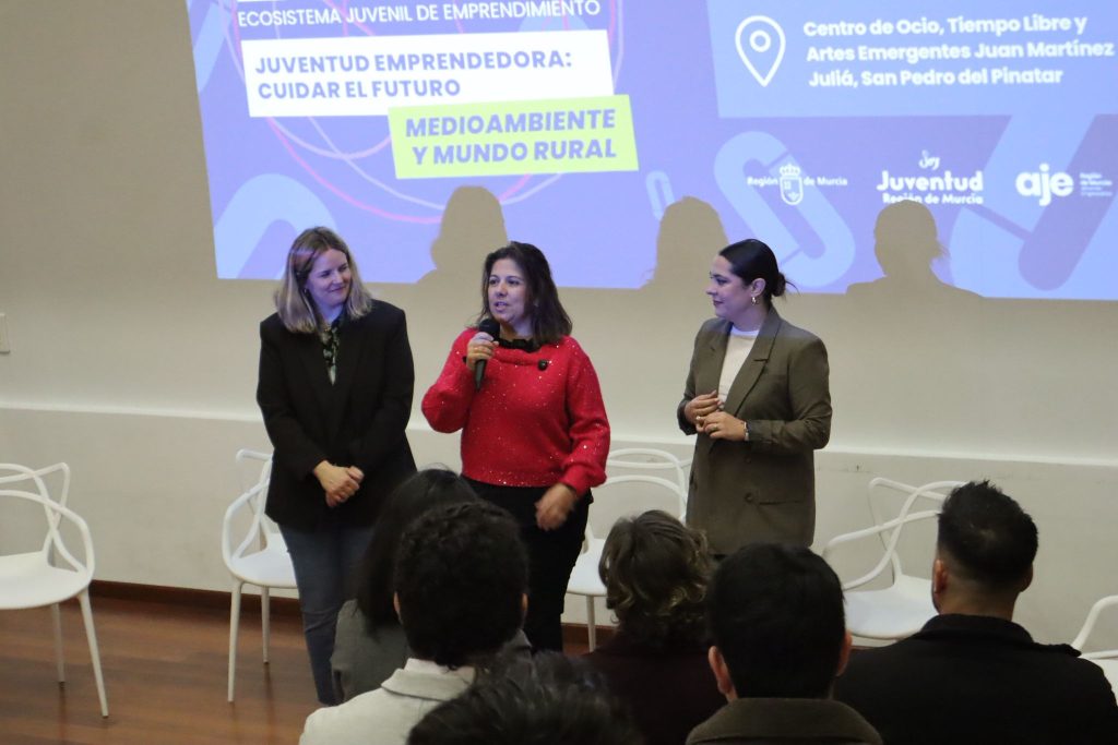 La Concejal de Educación, María Dolores Nieto, junto a la directora General de Juventud, Carmen María Muñoz, y la presidenta de AJE Región de Murcia, Almudena Abellán, han inaugurado estas jornadas destacando la importancia de la innovación aplicada al medio ambiente como motor de oportunidades, empleo y fijación de talento joven en el territorio.