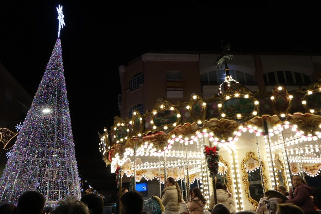 Miles de personas se congregaron en la plaza de la Constitución para disfrutar del encendido del alumbrado navideño y la inauguración del Belén Municipal que incorpora nuevas representaciones de la localidad.