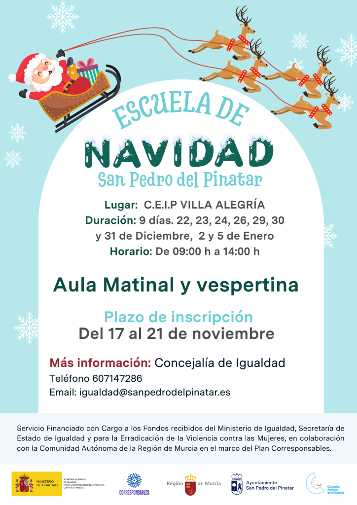 El Ayuntamiento de San Pedro del Pinatar, un año más va a prestar el servicio de Escuela de Navidad 2025-2026, para favorecer la conciliación de la vida laboral, personal y familiar en este periodo vacacional.
