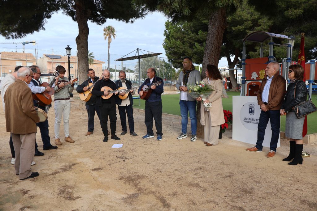 San Pedro del Pinatar ha vivido hoy un emotivo acto de reconocimiento con el nombramiento de un parque situado frente al colegio Lo Pinos, con el nombre de Luis Fernández Roca en una placa que se ha descubierto durante el acto, en recuerdo y homenaje a quien fuera presidente de la Peña El Caldero durante 38 años y una figura muy querida en el municipio.